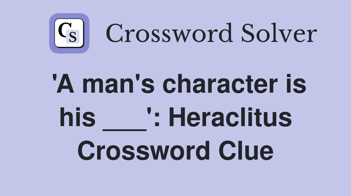 #39 A man #39 s character is his #39 : Heraclitus Crossword Clue Answers
