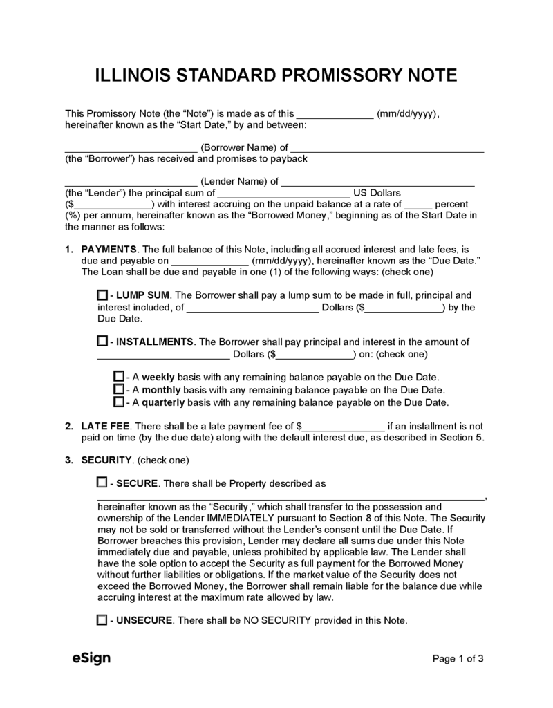 Promissory Note Template Illinois