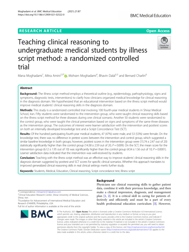 (PDF) Teaching of Clinical Reasoning Guided by Illness Script Theory