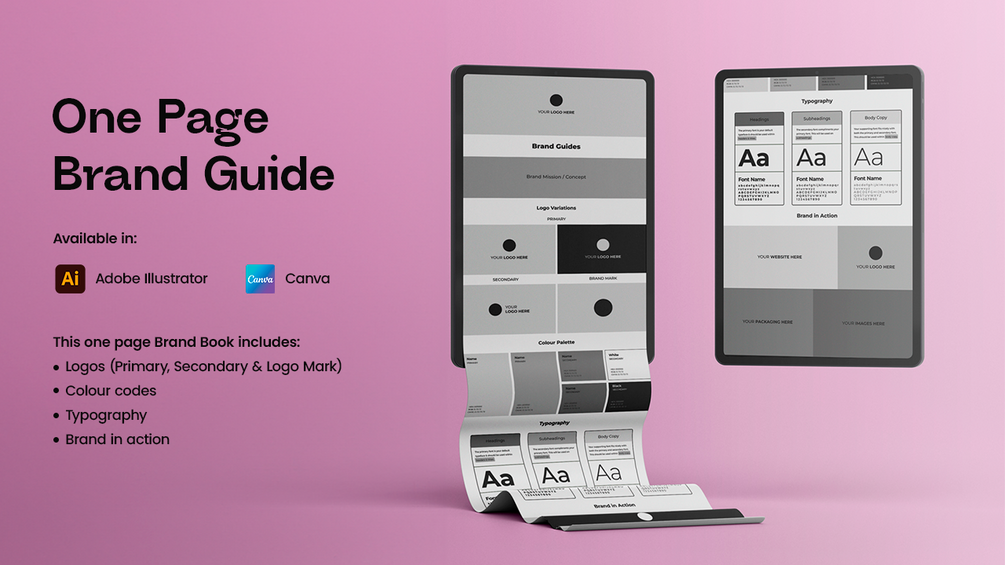 One Page Brand Guide Template (Illustrator and Canva)