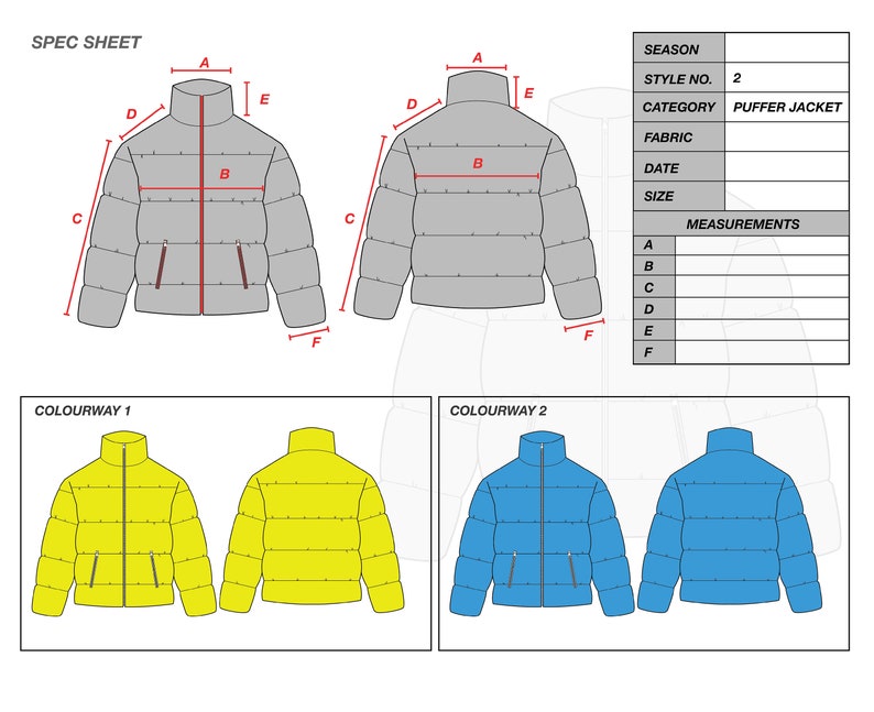 Puffer Jacket Adobe Illustrator Tech Pack / Vector Drawing Etsy
