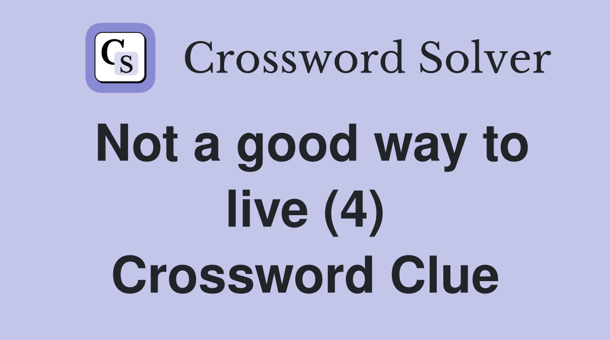 Not a good way to live (4) Crossword Clue Answers Crossword Solver