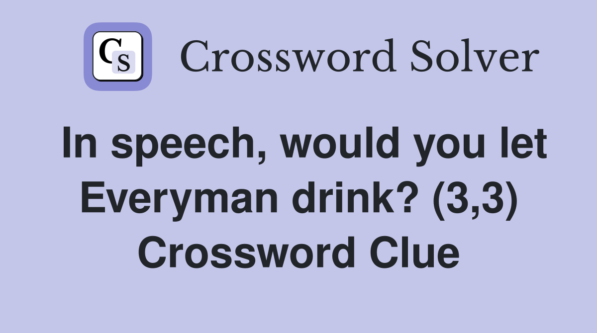 In speech would you let Everyman drink? (3 3) Crossword Clue Answers