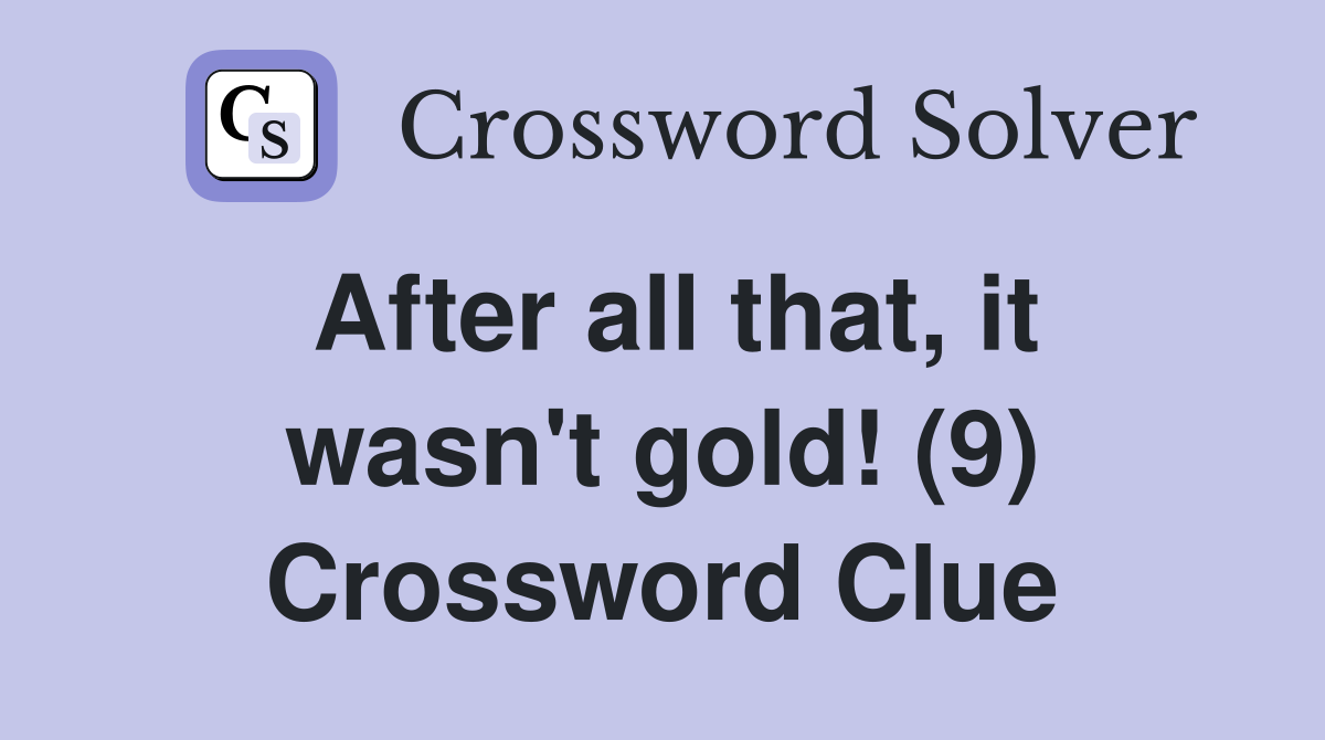 After all that it wasn #39 t gold (9) Crossword Clue Answers