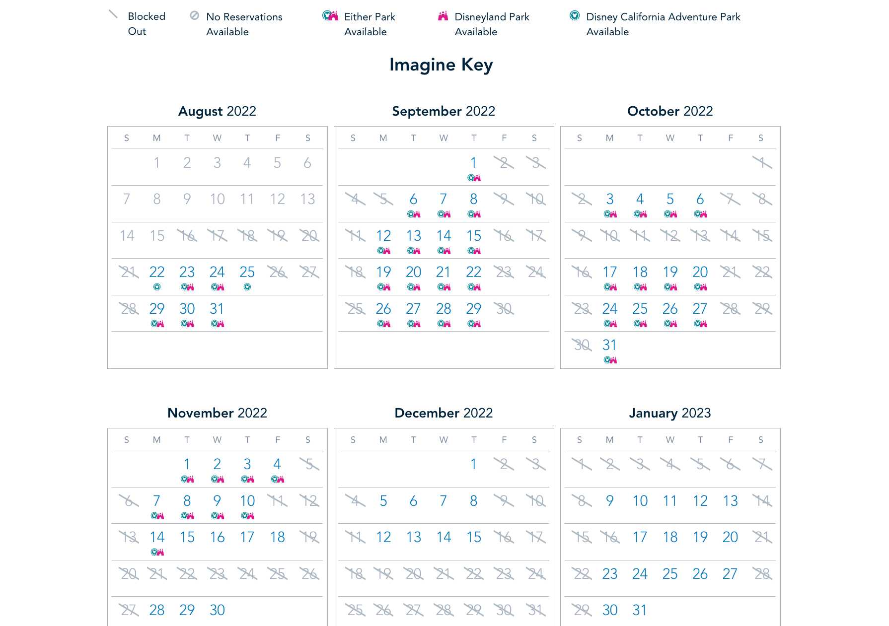 Disneyland Magic Key reservation access calendar october 2022 Imagine