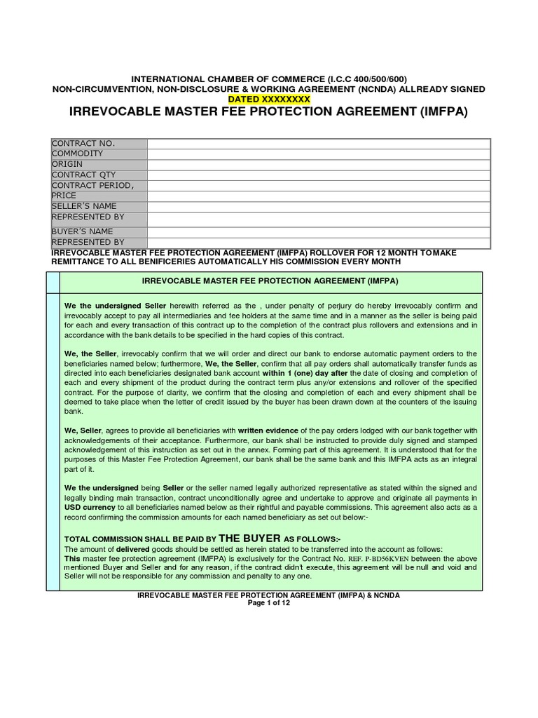 Irrevocable Master Fee Protection Agreement IMFPA NCNDA PDF