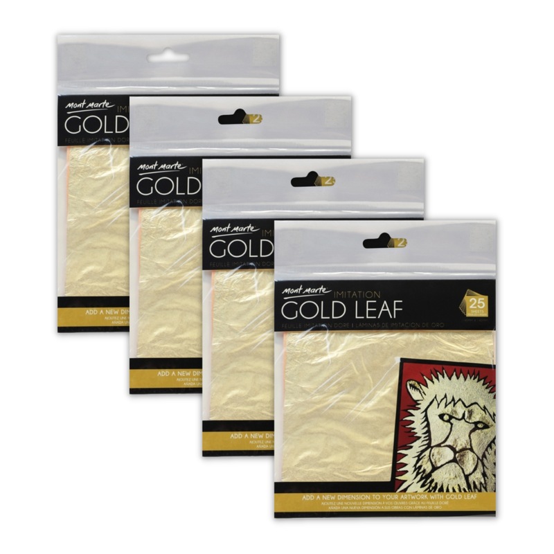 Buy 4x Mont Marte Imitation Gold Leaf Packs 14cm 100 Sheets Bulk Set