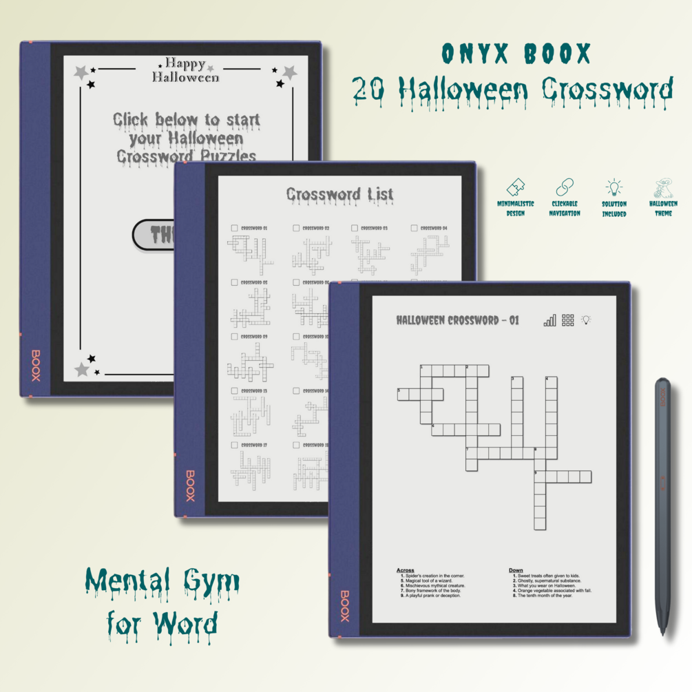 Onyx Boox Halloween Crossword Puzzle E Ink Edition of The Immersive