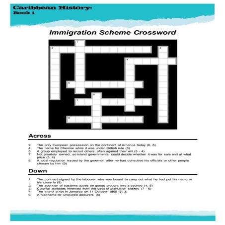 CSEC History Immigration scheme crossword DOCX