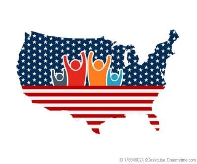 Silhouettes of Americans with the Flag of America Color Vector Stock