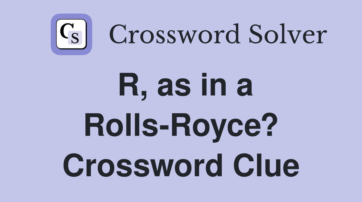 R as in a Rolls Royce? Crossword Clue Answers Crossword Solver