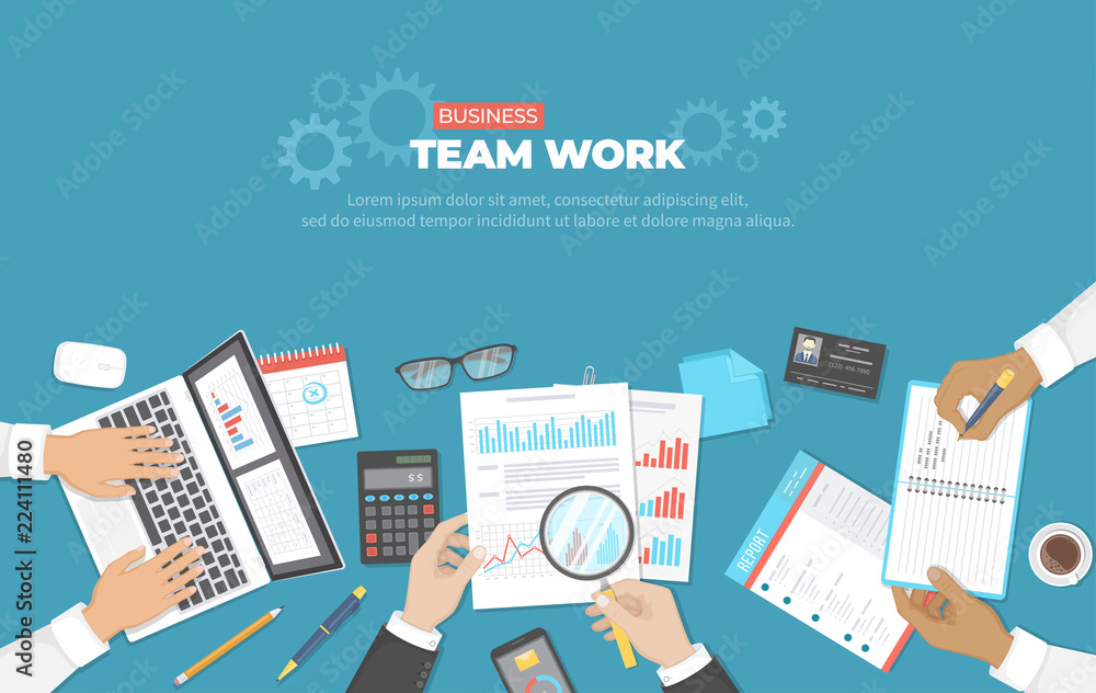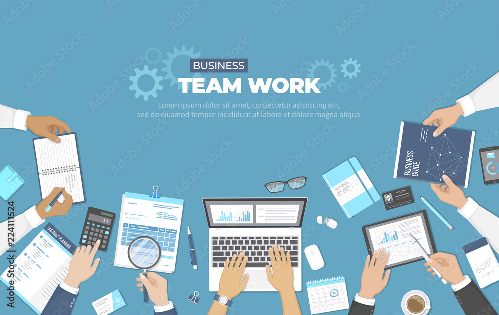 Business team teamwork concept top view people on table vector