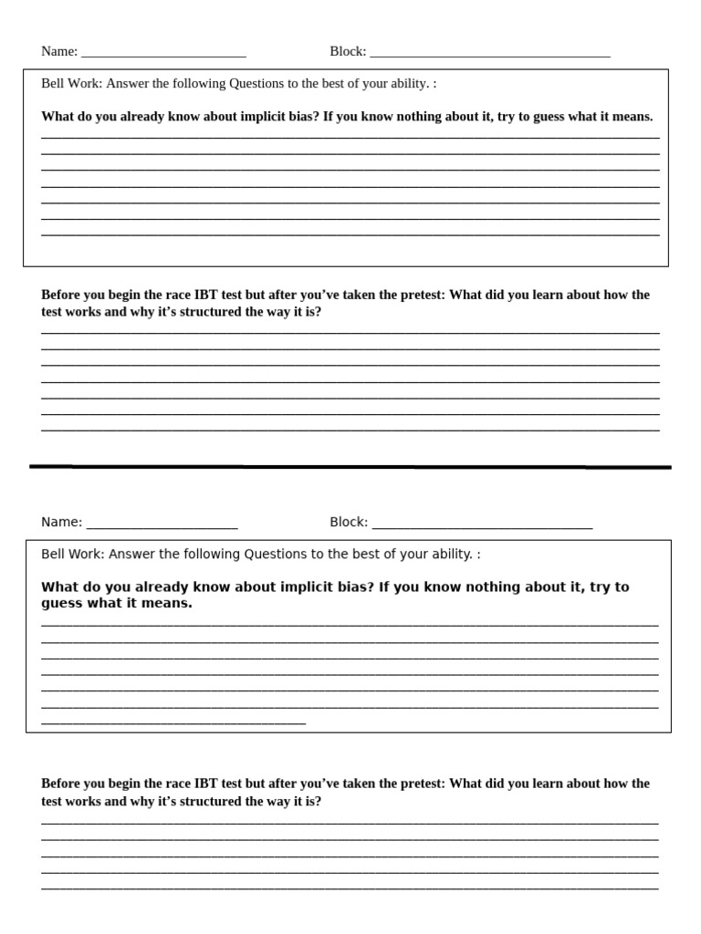 Implicit Bias Test Printable