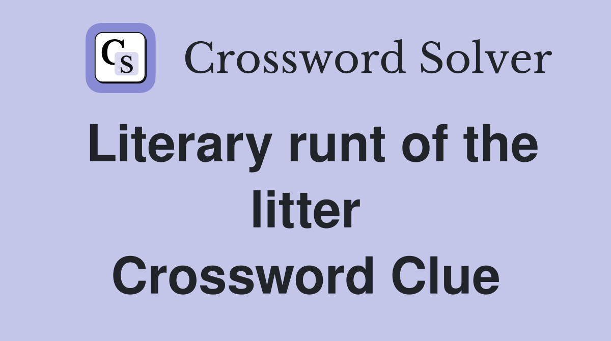 Literary runt of the litter Crossword Clue Answers Crossword Solver