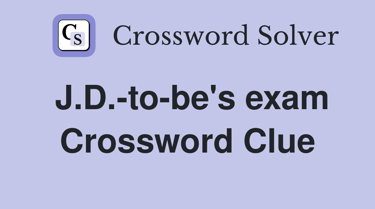 J D to be #39 s exam Crossword Clue Answers Crossword Solver