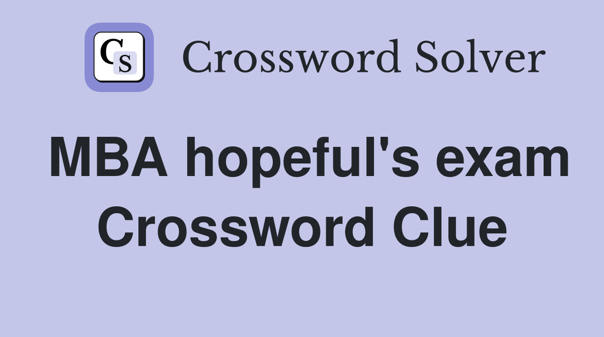 MBA hopeful #39 s exam Crossword Clue Answers Crossword Solver