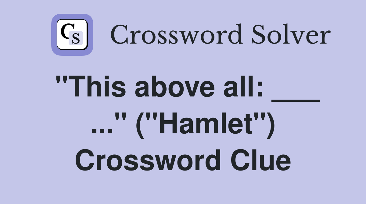 quot This above all: quot ( quot Hamlet quot ) Crossword Clue Answers