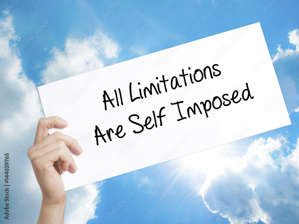 All Limitations Are Self Imposed Sign on white paper Man Hand Holding