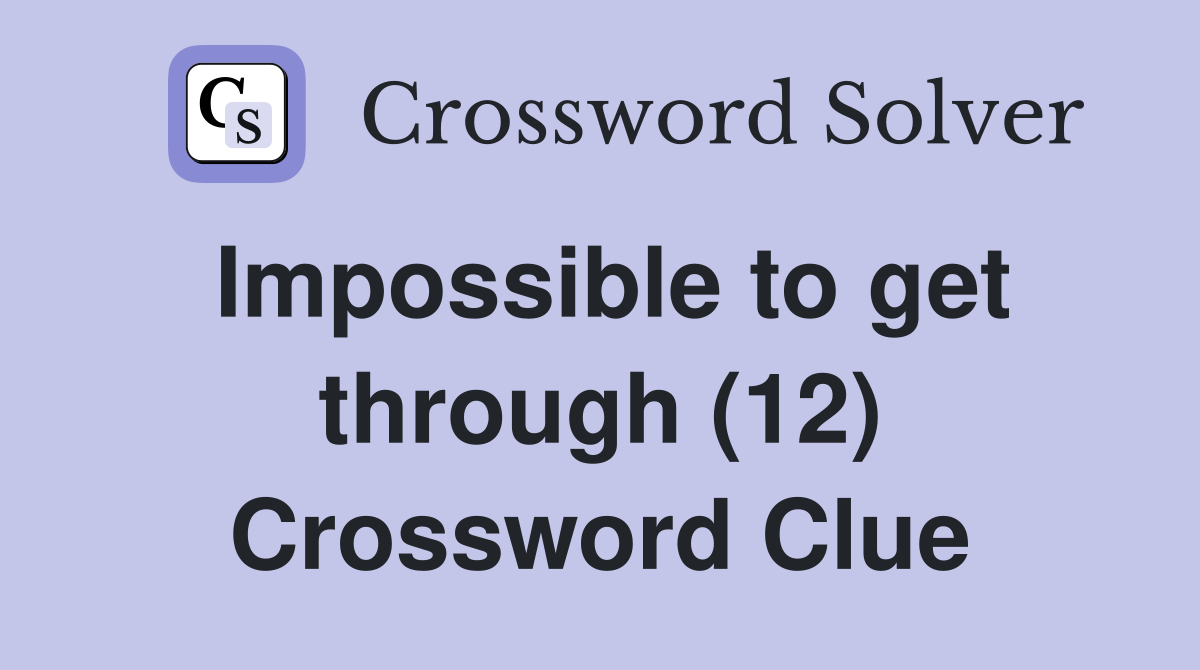Impossible to get through (12) Crossword Clue Answers Crossword Solver