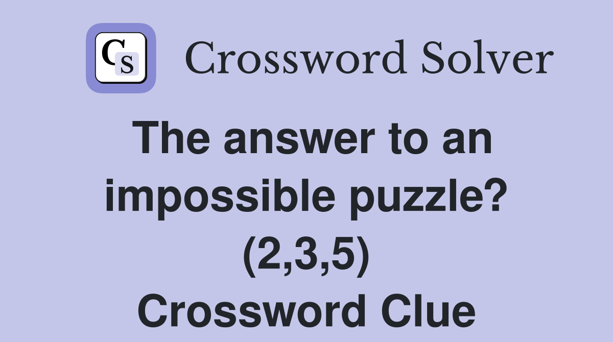 The answer to an impossible puzzle? (2 3 5) Crossword Clue Answers