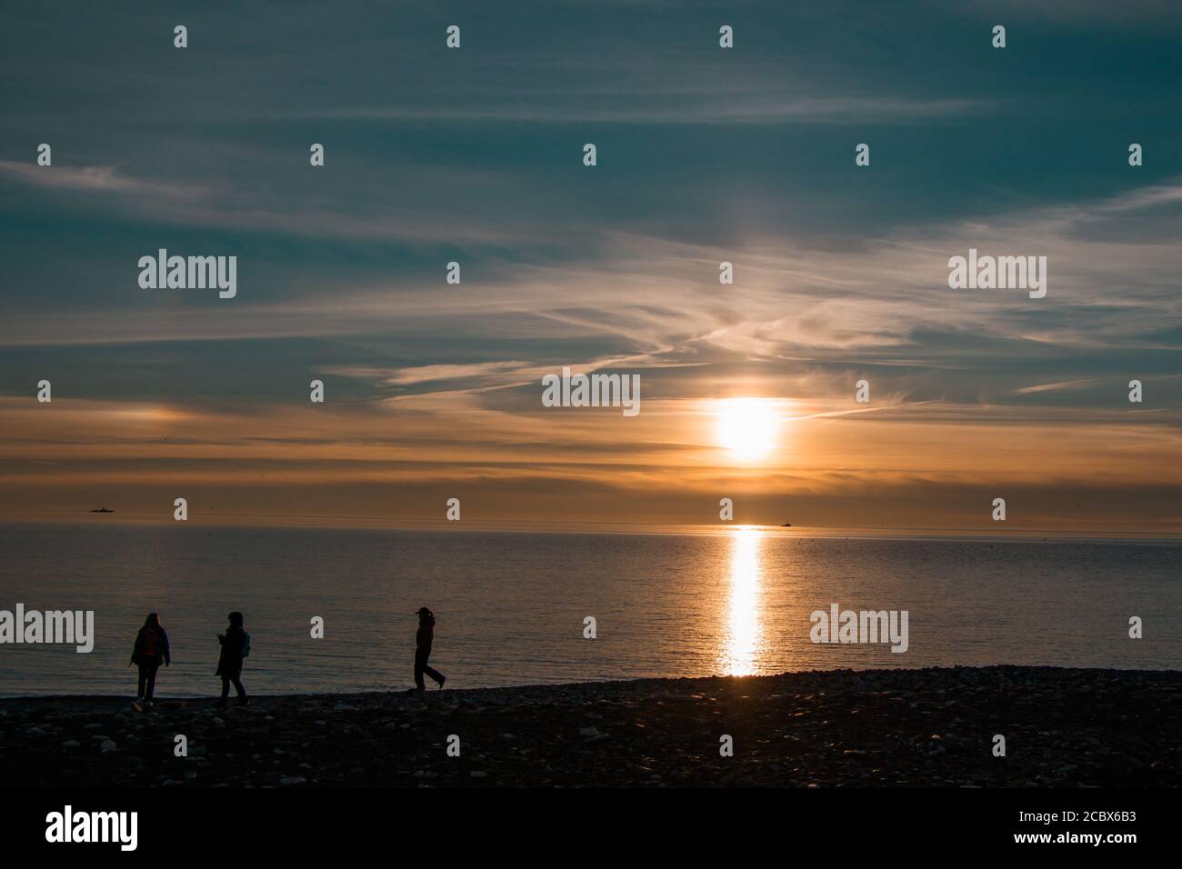 Impressive beautiful winter sunset on the Black Sea Russia Stock Photo