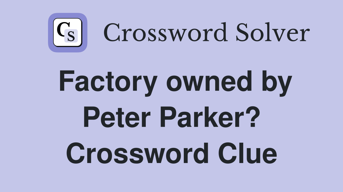 Factory owned by Peter Parker? Crossword Clue Answers Crossword Solver