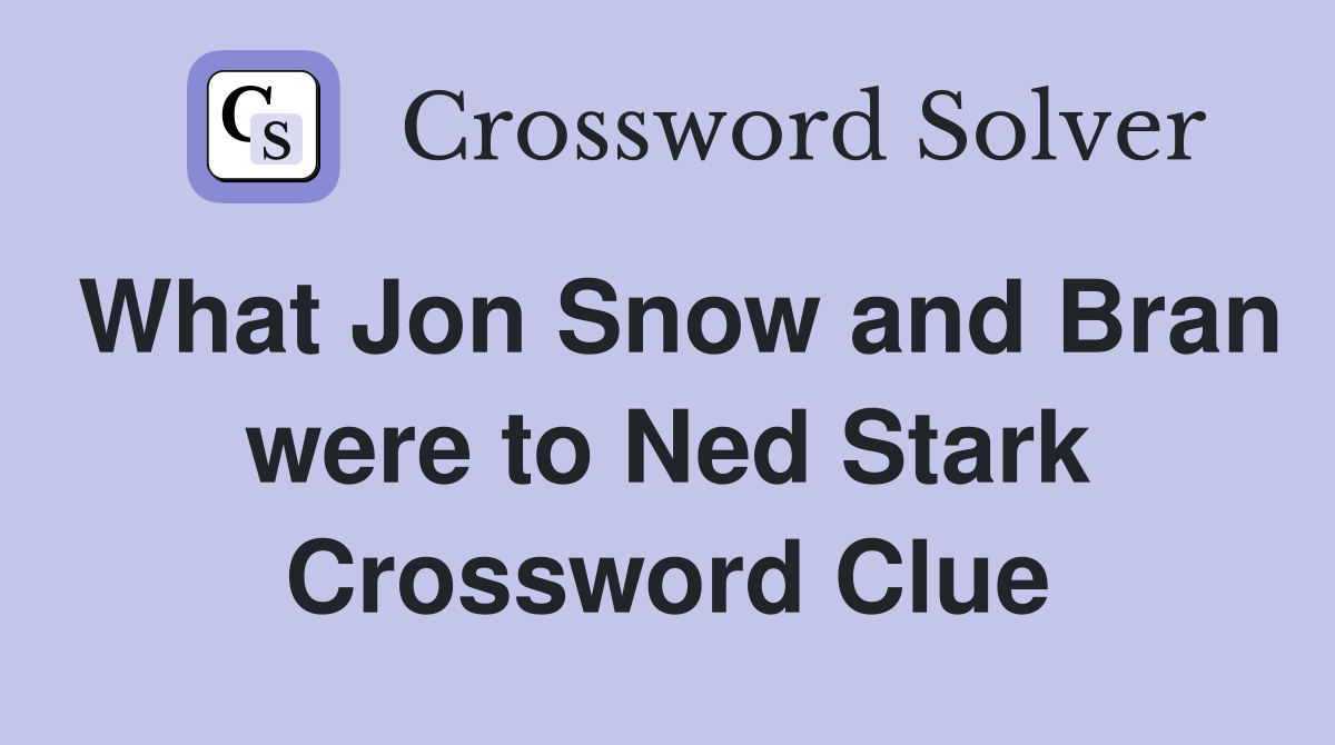 What Jon Snow and Bran were to Ned Stark Crossword Clue Answers