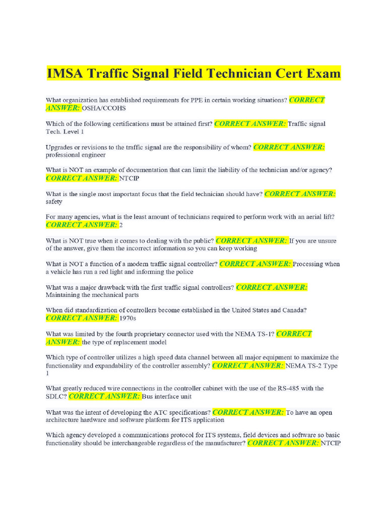 Imsa Traffic Signal Field Technician Cert Exam PDF