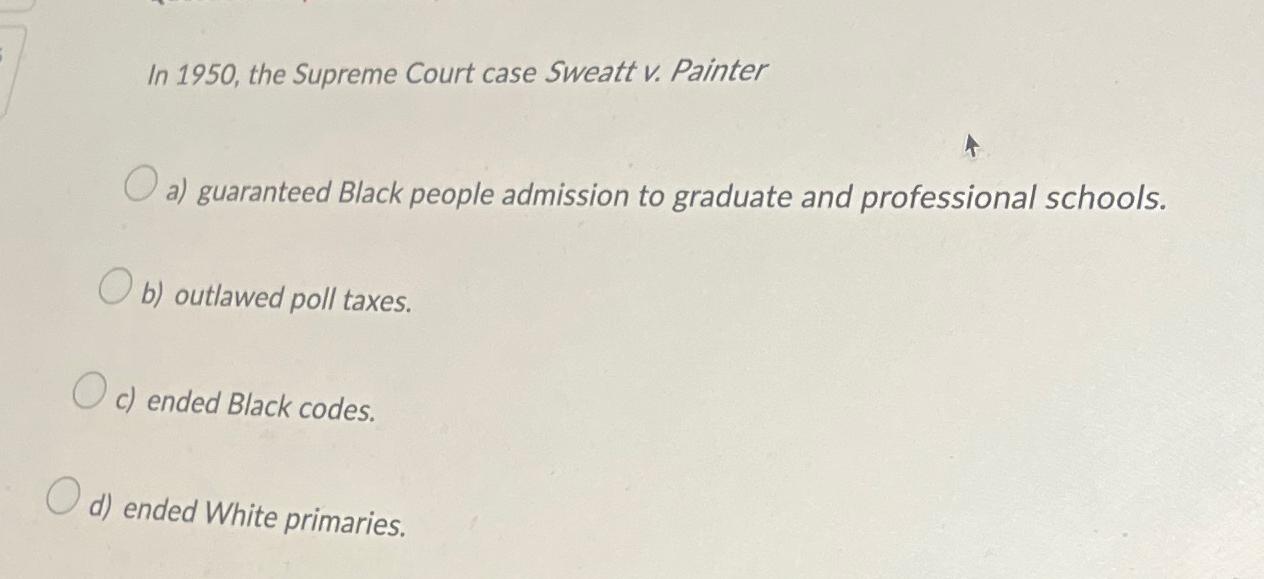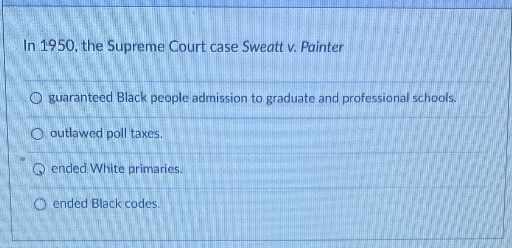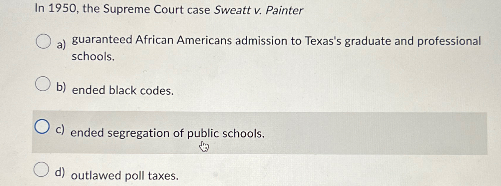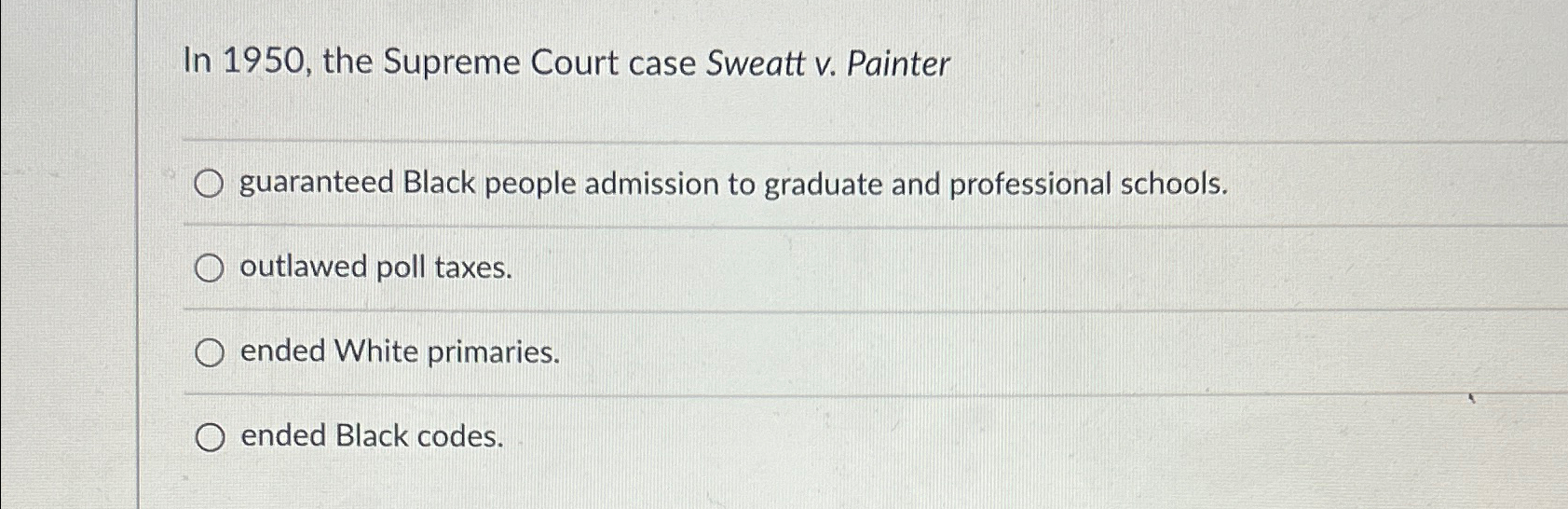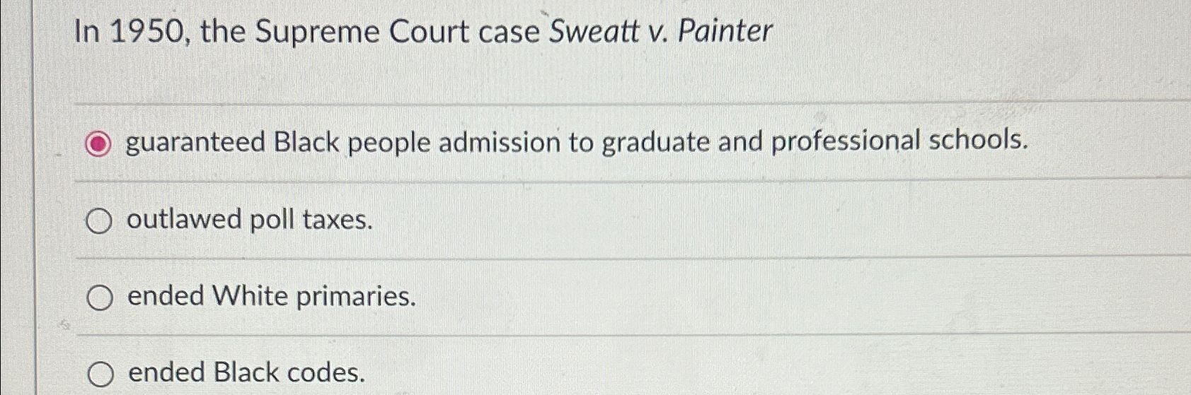 Solved In 1950 the Supreme Court case Sweatt v Paintera) Chegg com