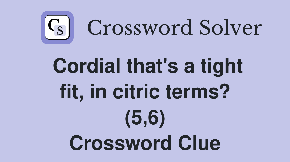 Cordial that #39 s a tight fit in citric terms? (5 6) Crossword Clue