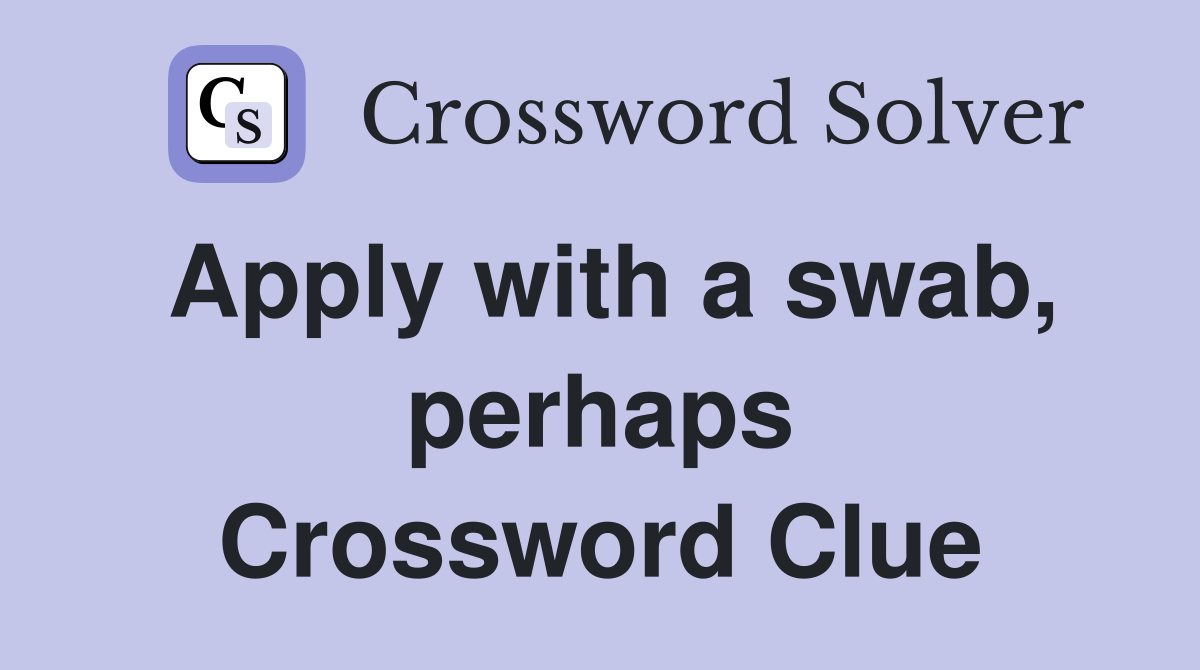 Apply with a swab perhaps Crossword Clue Answers Crossword Solver