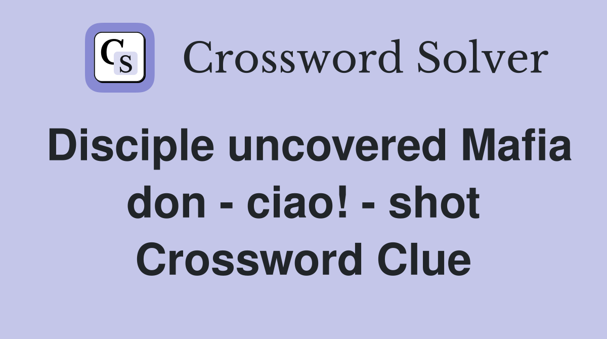 Disciple uncovered Mafia don ciao shot Crossword Clue Answers