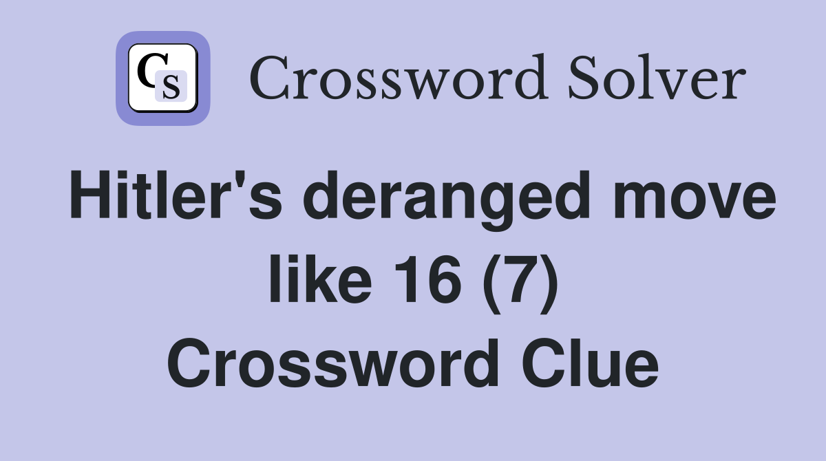 #39 s deranged move like 16 (7) Crossword Clue Answers Crossword