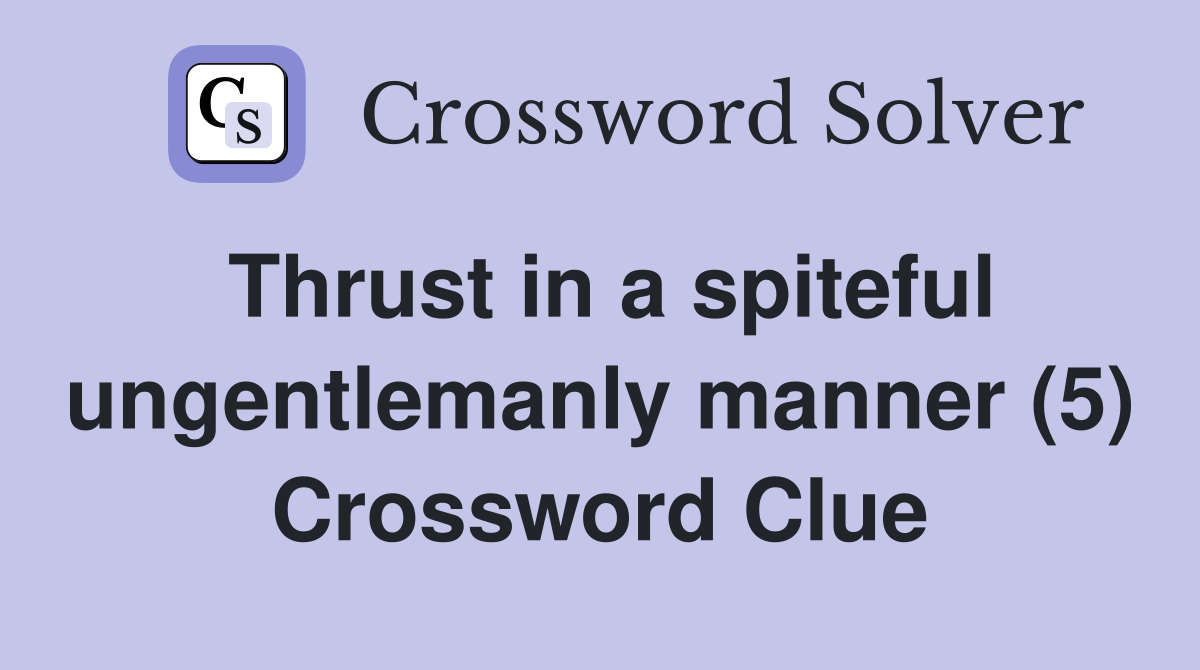 Thrust in a spiteful ungentlemanly manner (5) Crossword Clue Answers