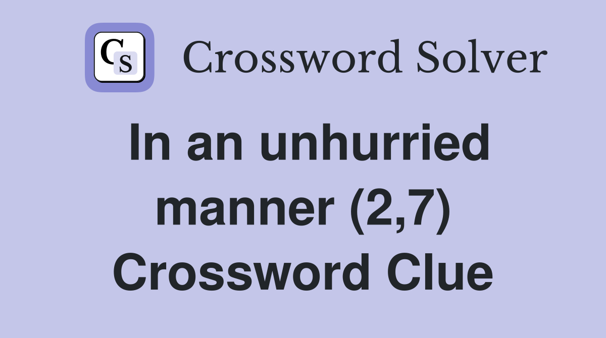 In an unhurried manner (2 7) Crossword Clue Answers Crossword Solver