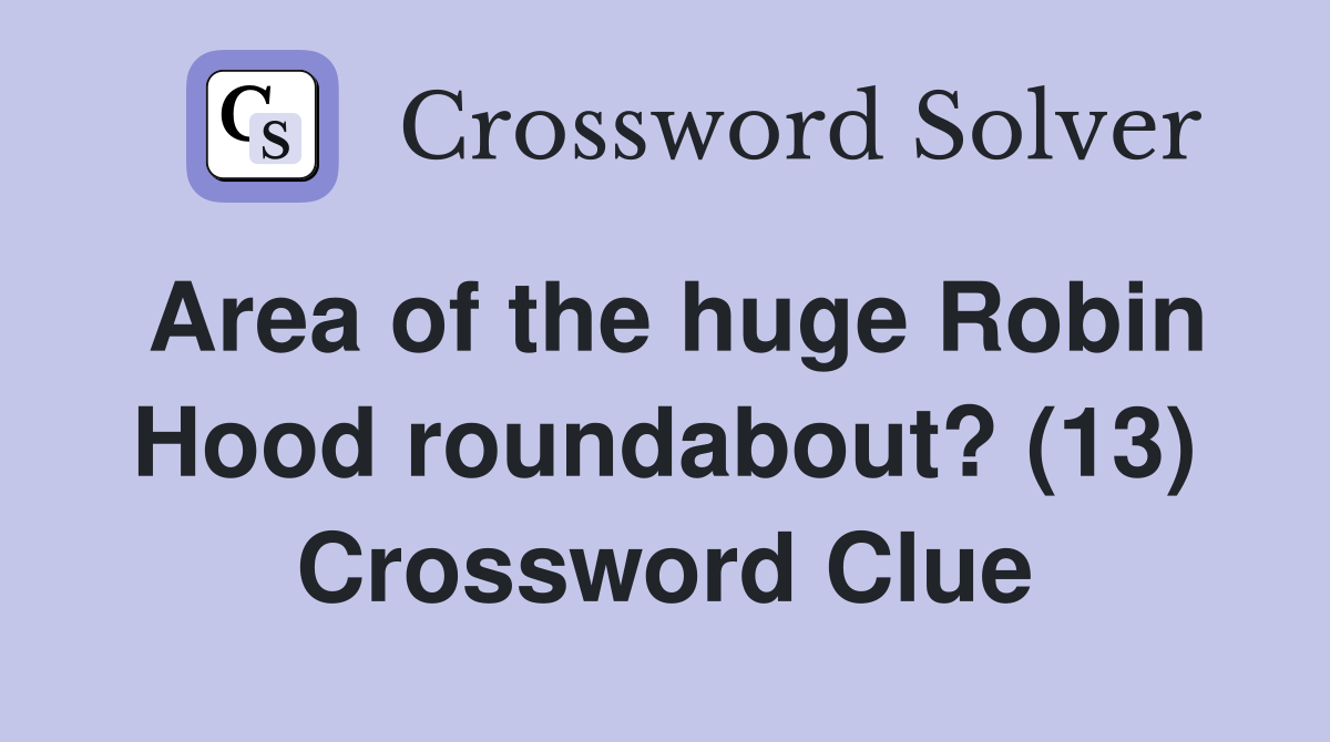 Area of the huge Robin Hood roundabout? (13) Crossword Clue Answers