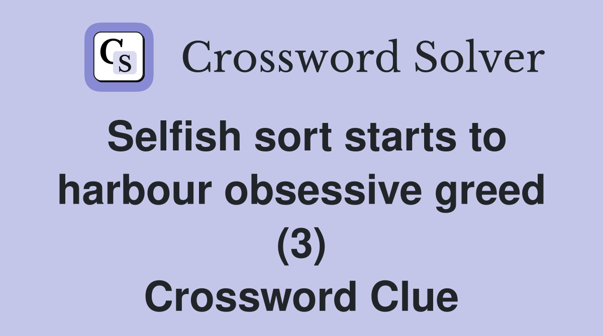 Selfish sort starts to harbour obsessive greed (3) Crossword Clue