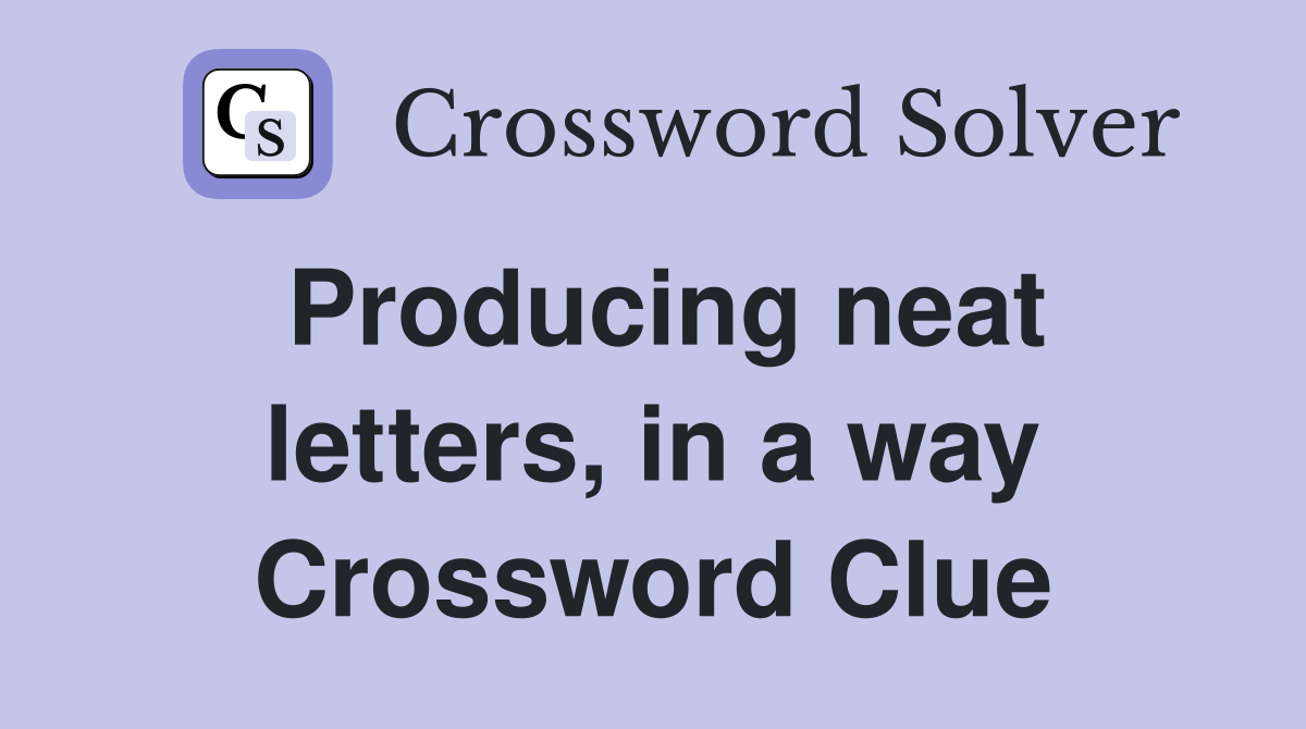 Producing neat letters in a way Crossword Clue Answers Crossword