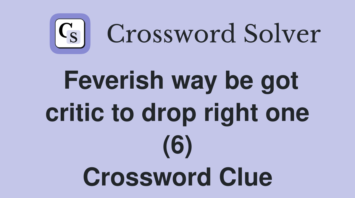 Feverish way be got critic to drop right one (6) Crossword Clue