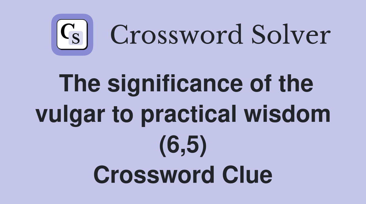The significance of the vulgar to practical wisdom (6 5) Crossword