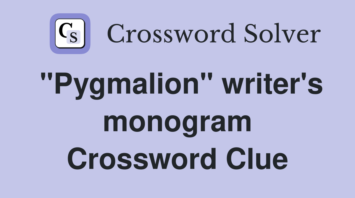 quot Pygmalion quot writer #39 s monogram Crossword Clue Answers Crossword Solver