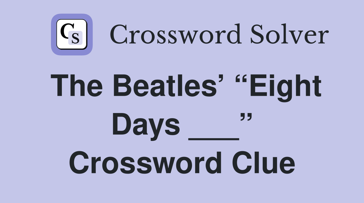 The Beatles Eight Days Crossword Clue Answers Crossword Solver