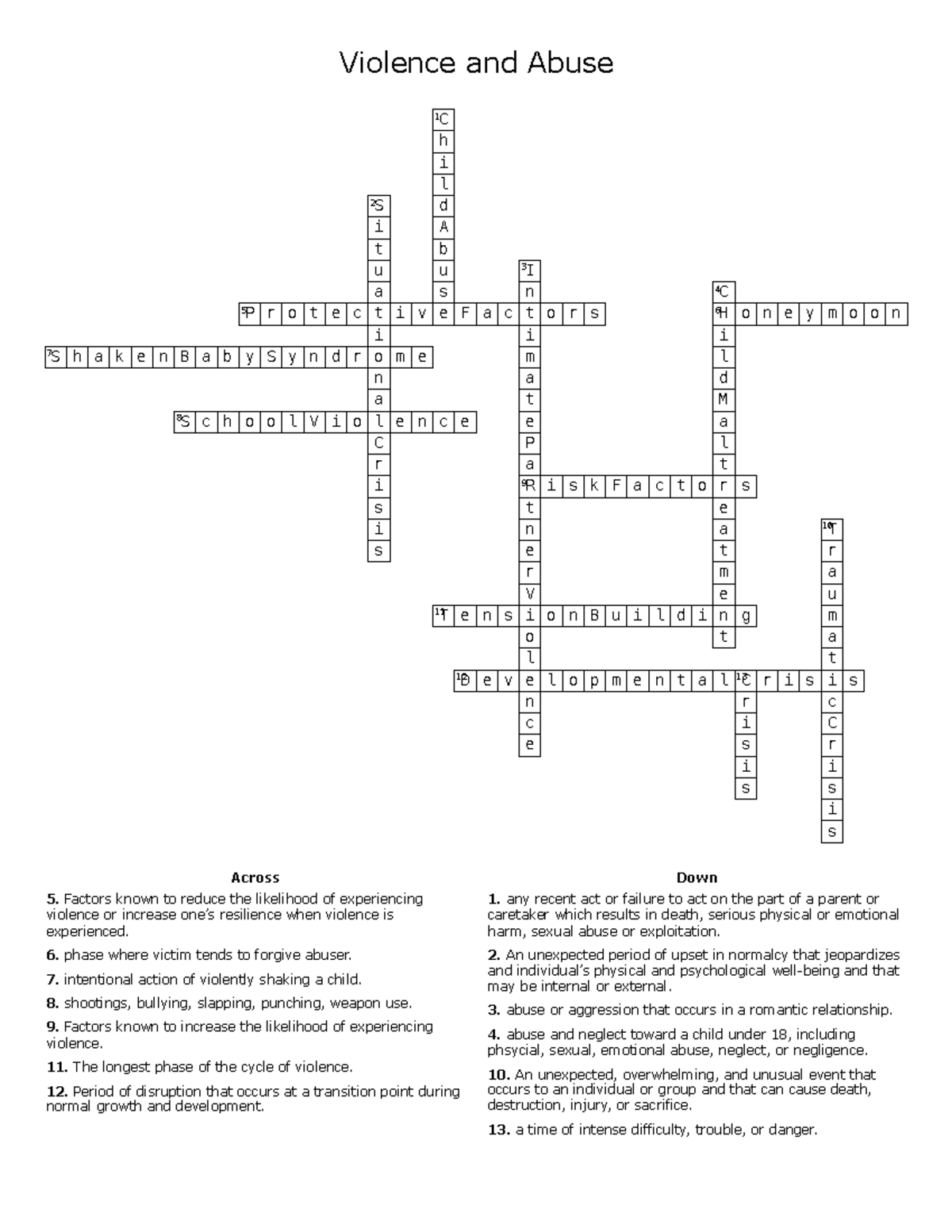 Answers Crossword Puzzle Violence and Abuse Across 5 Factors known