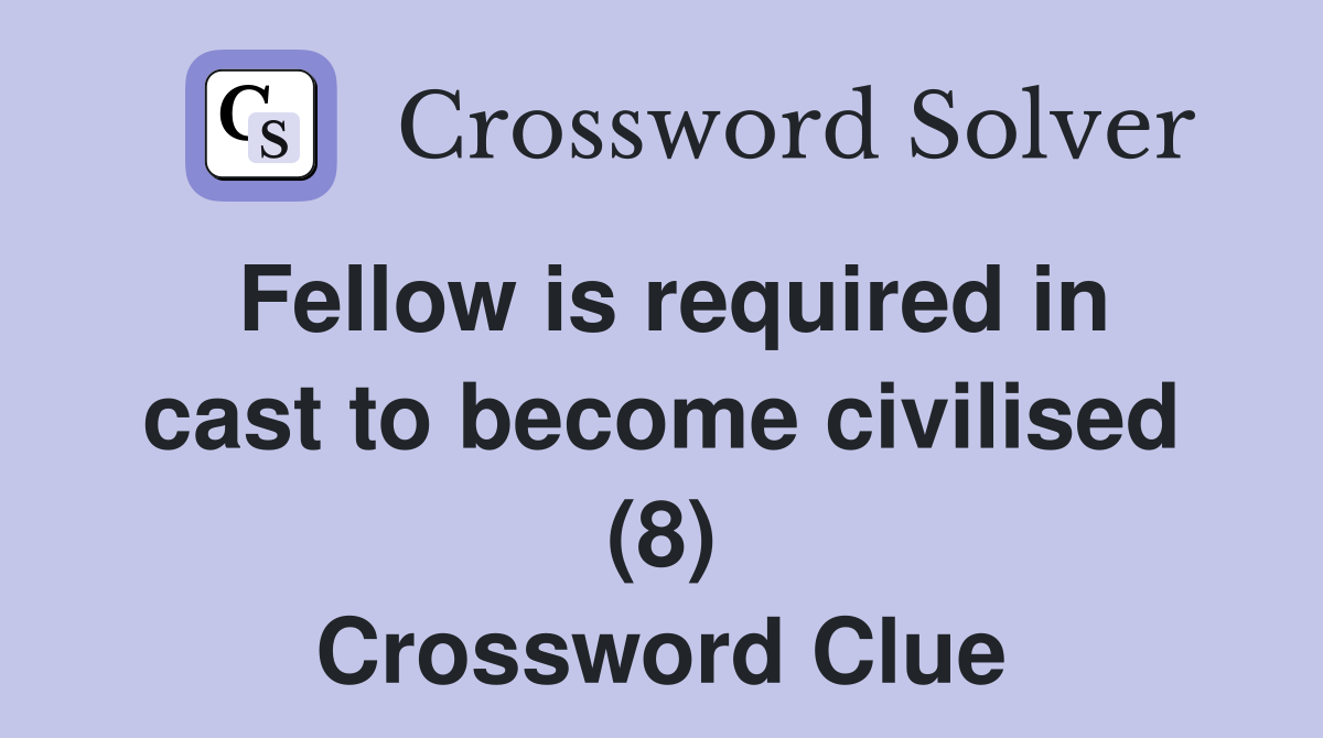 Fellow is required in cast to become civilised (8) Crossword Clue