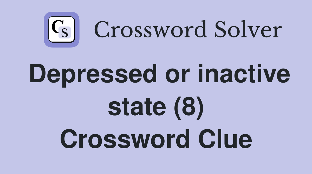 Depressed or inactive state (8) Crossword Clue Answers Crossword Solver