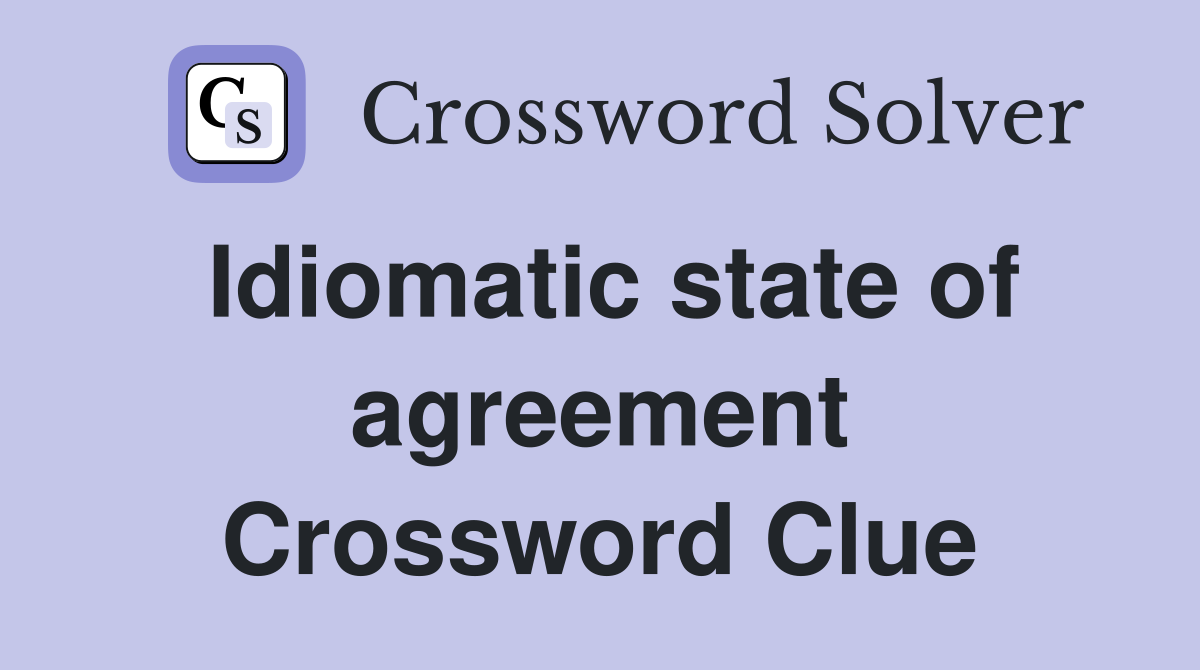 Idiomatic state of agreement Crossword Clue Answers Crossword Solver