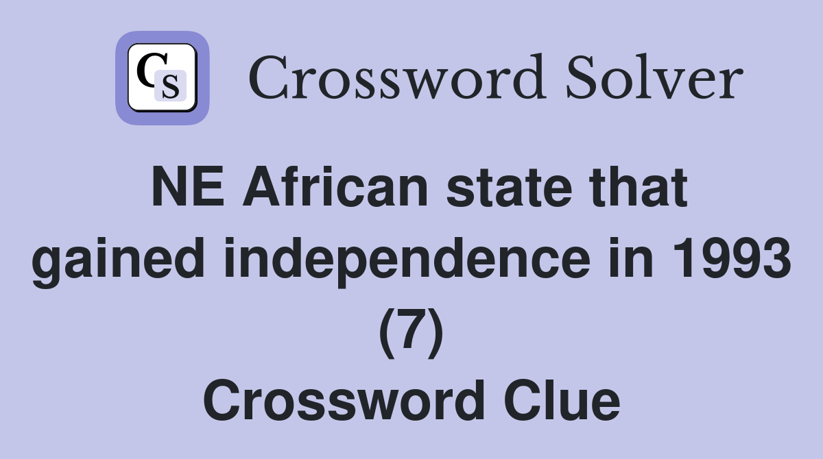 NE African state that gained independence in 1993 (7) Crossword Clue