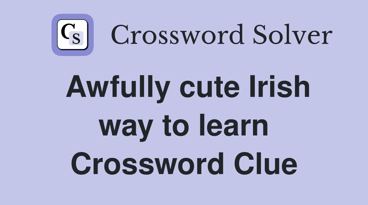 Awfully cute Irish way to learn Crossword Clue Answers Crossword Solver