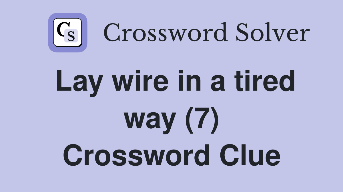 Lay wire in a tired way (7) Crossword Clue Answers Crossword Solver