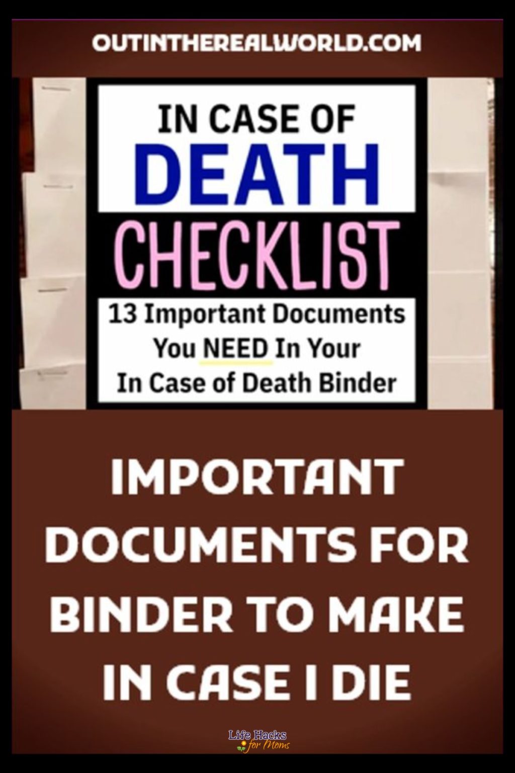 In Case Of Death Binder Checklist and Printable Organizer PDF